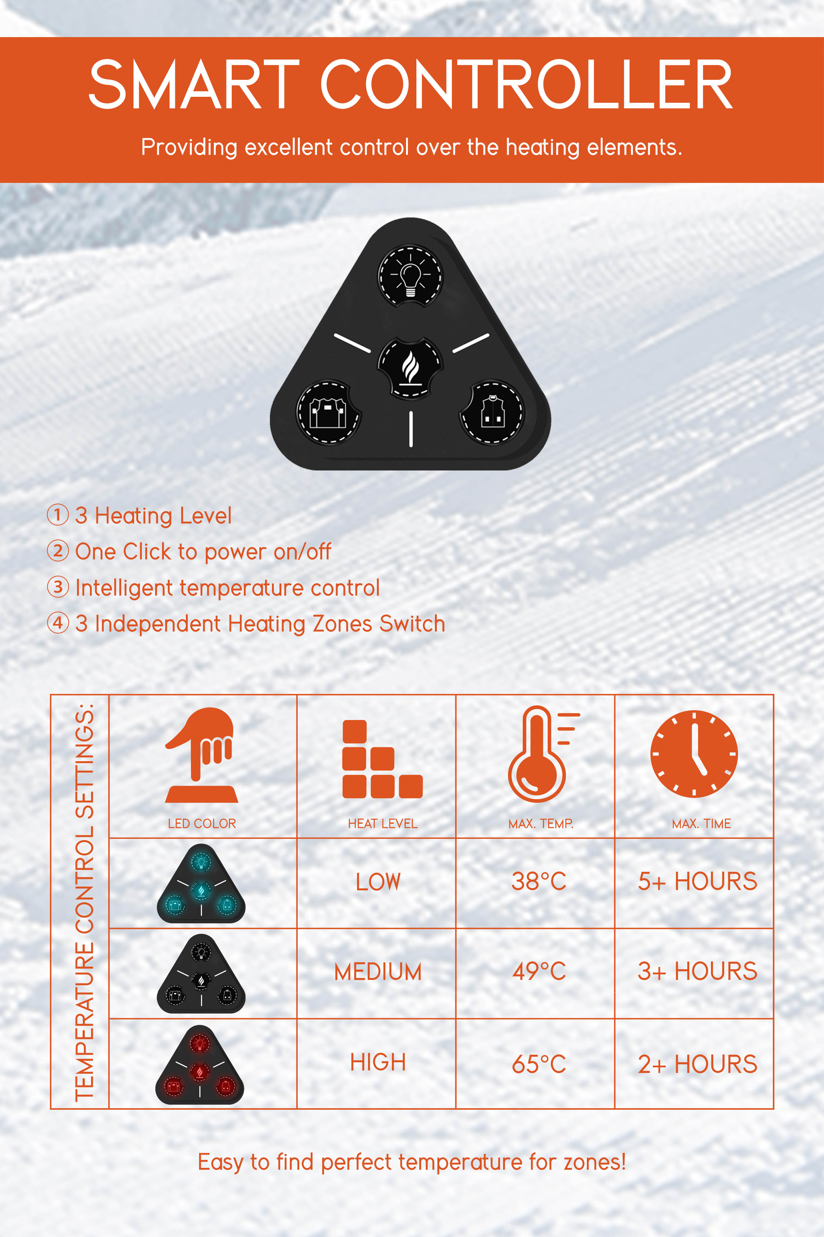 - - 3-heating settings allow you to change the level of warmth, different heating areas allow you to change the warmth position,with just a simple press of the power button.