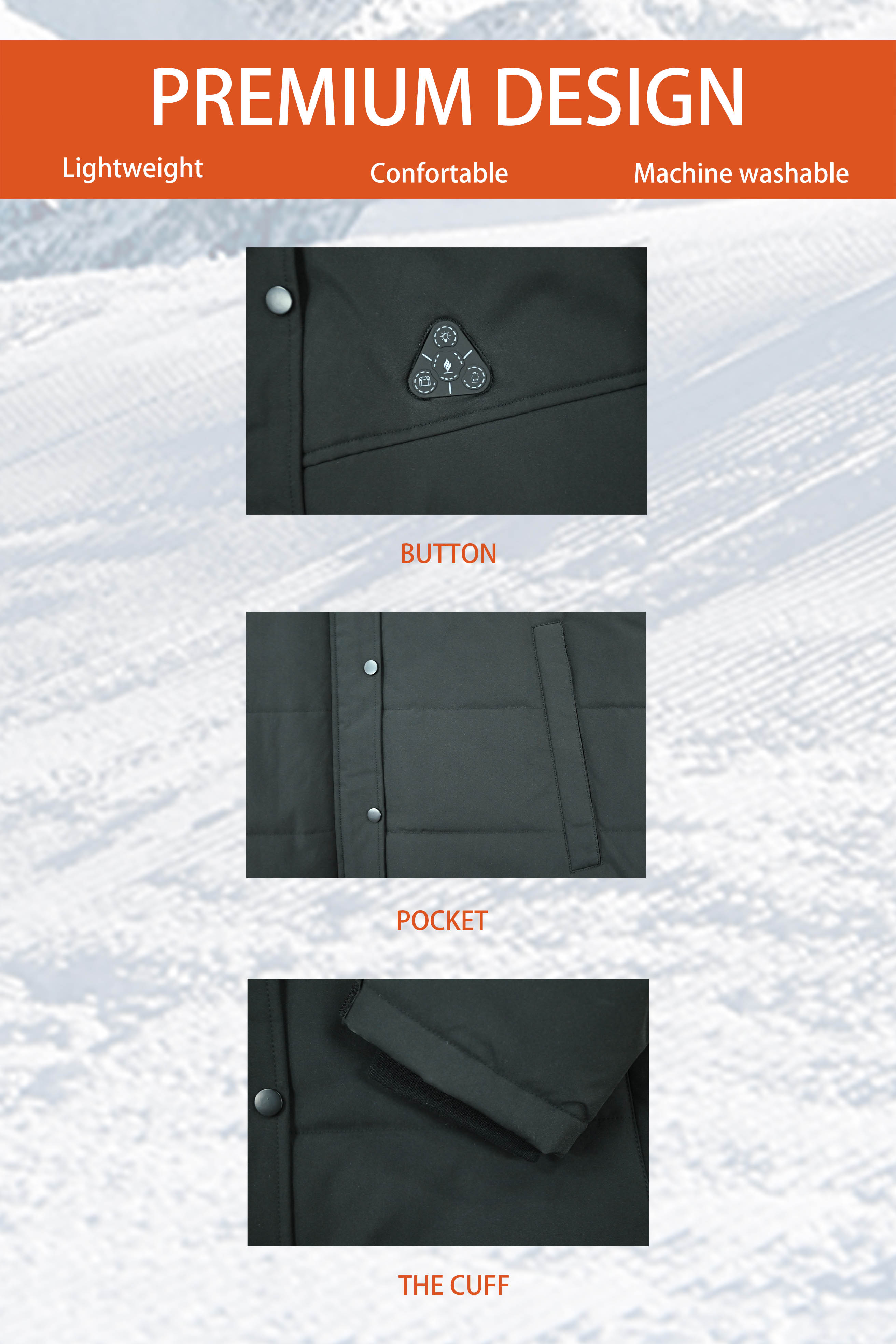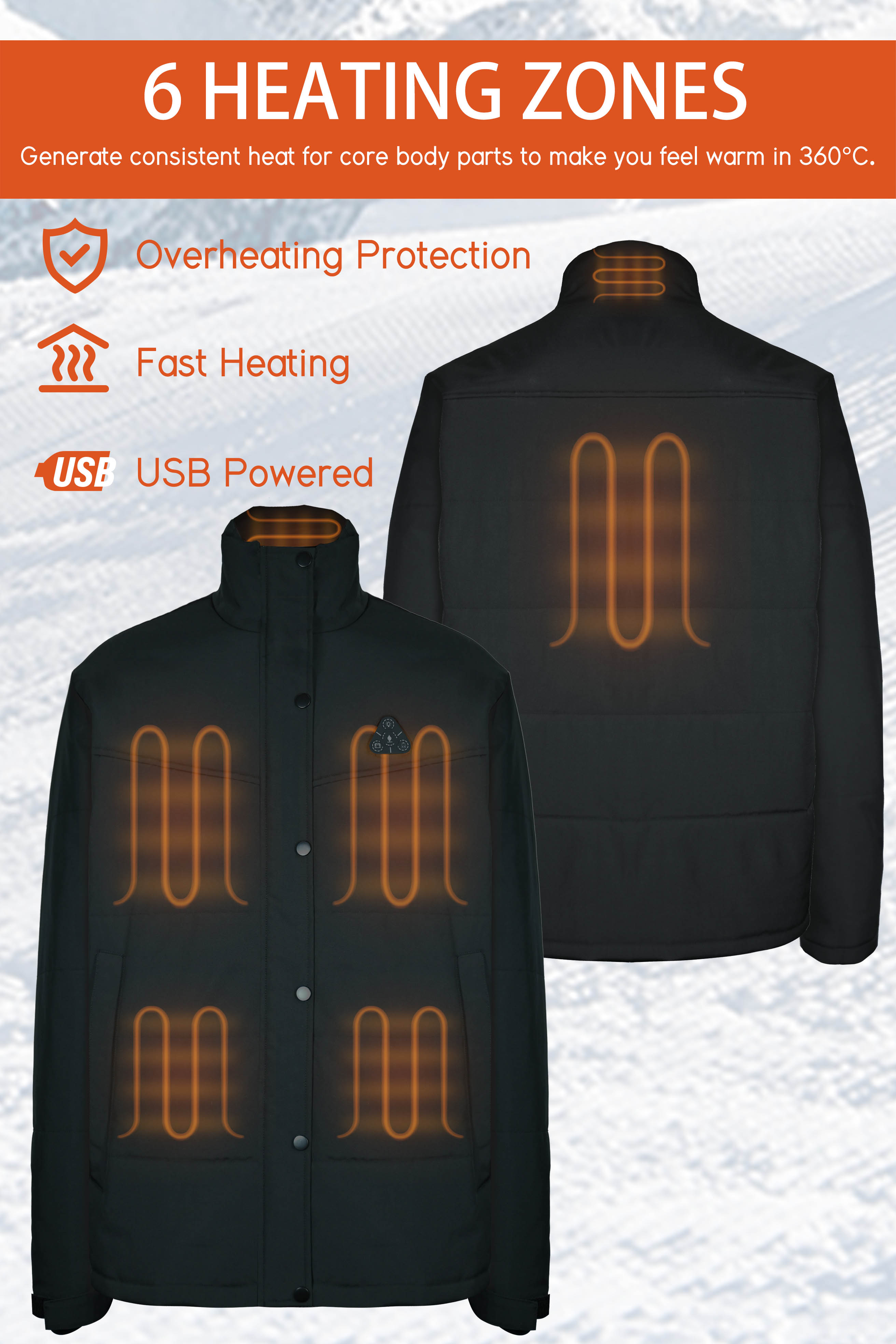 - - The powerful six-zone heating system includes 6 buit-in heating panels, strategically placed on the chest ,